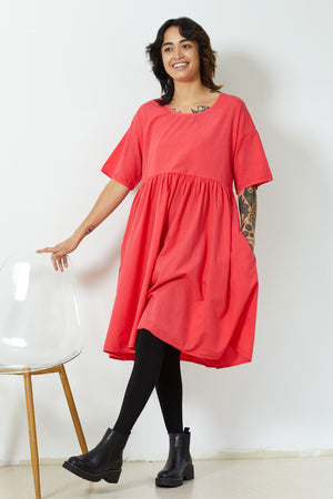 The Jade dress is a perfectly oversized and its season-less. It is made of the softest, garment dyed Tencel / cotton blend. It's an easy care dress with a cool personality. Made in small productions in Los Angeles, CA.
