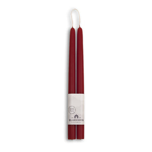 Bluecorn tapers are classic candles dipped into pure molten beeswax at just the right temperature by a steady hand and a keen eye. They are dipped and cooled over twenty times each before a pair can be cut free from the oak rack. When finished and hung, they carry the rich scent of honey and seem to hold light in their bellies. Kept out of drafts and away from fans these tapers will burn virtually dripless for about one hour per inch of length.