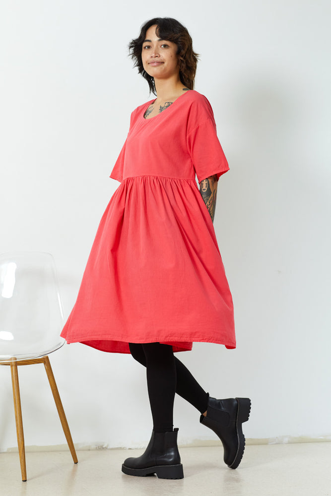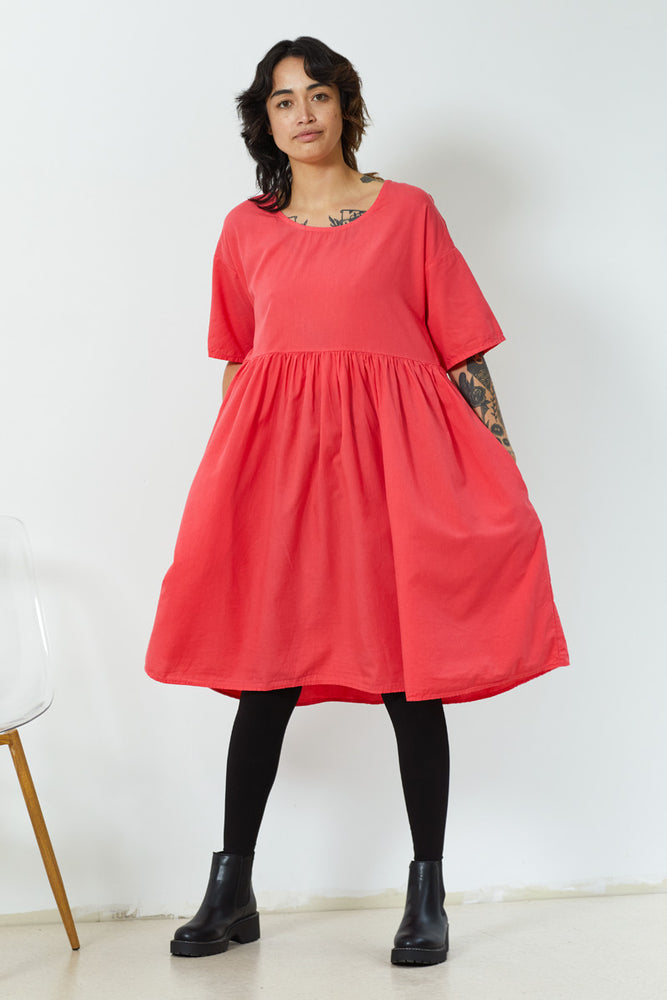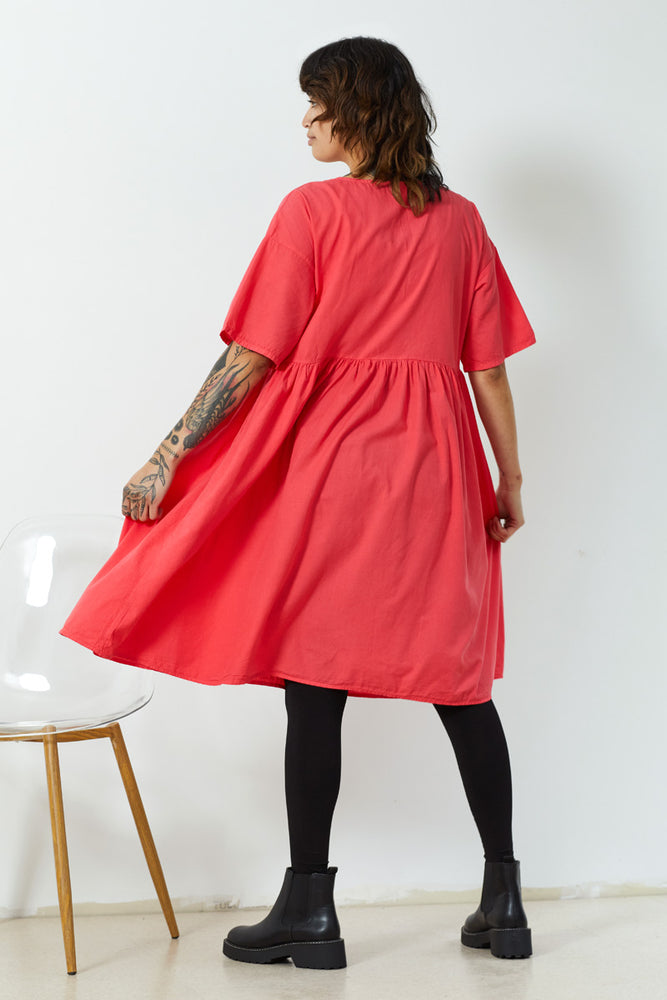 The Jade dress is a perfectly oversized and its season-less. It is made of the softest, garment dyed Tencel / cotton blend. It's an easy care dress with a cool personality. Made in small productions in Los Angeles, CA.