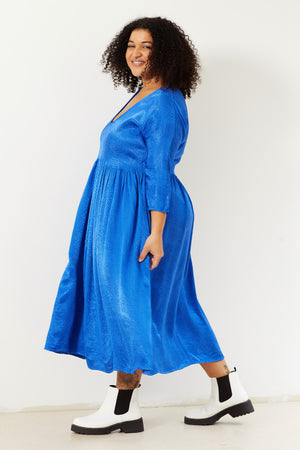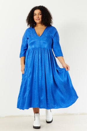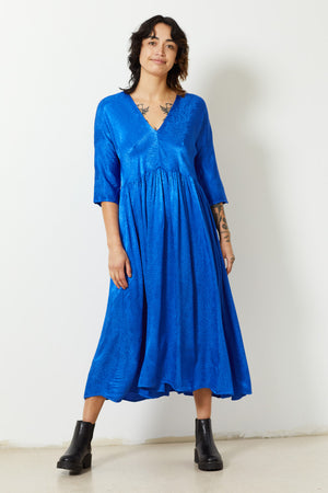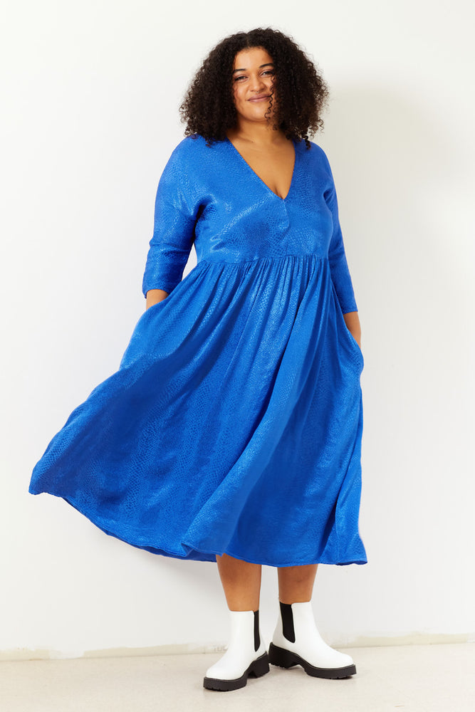 The Lynx dress is inspired by one of our most creative, lovely friends. When we put it on we want to spin and dance and play. The Lynx dress is off the body with a deep v, 3/4 length sleeves gathered waist and a full skirt. Of course, it has pockets.