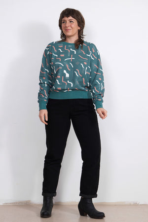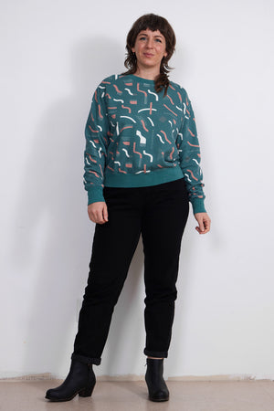 Max Organic Sweatshirt - Jade - Shoots & Ladders Print