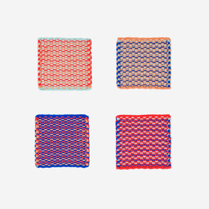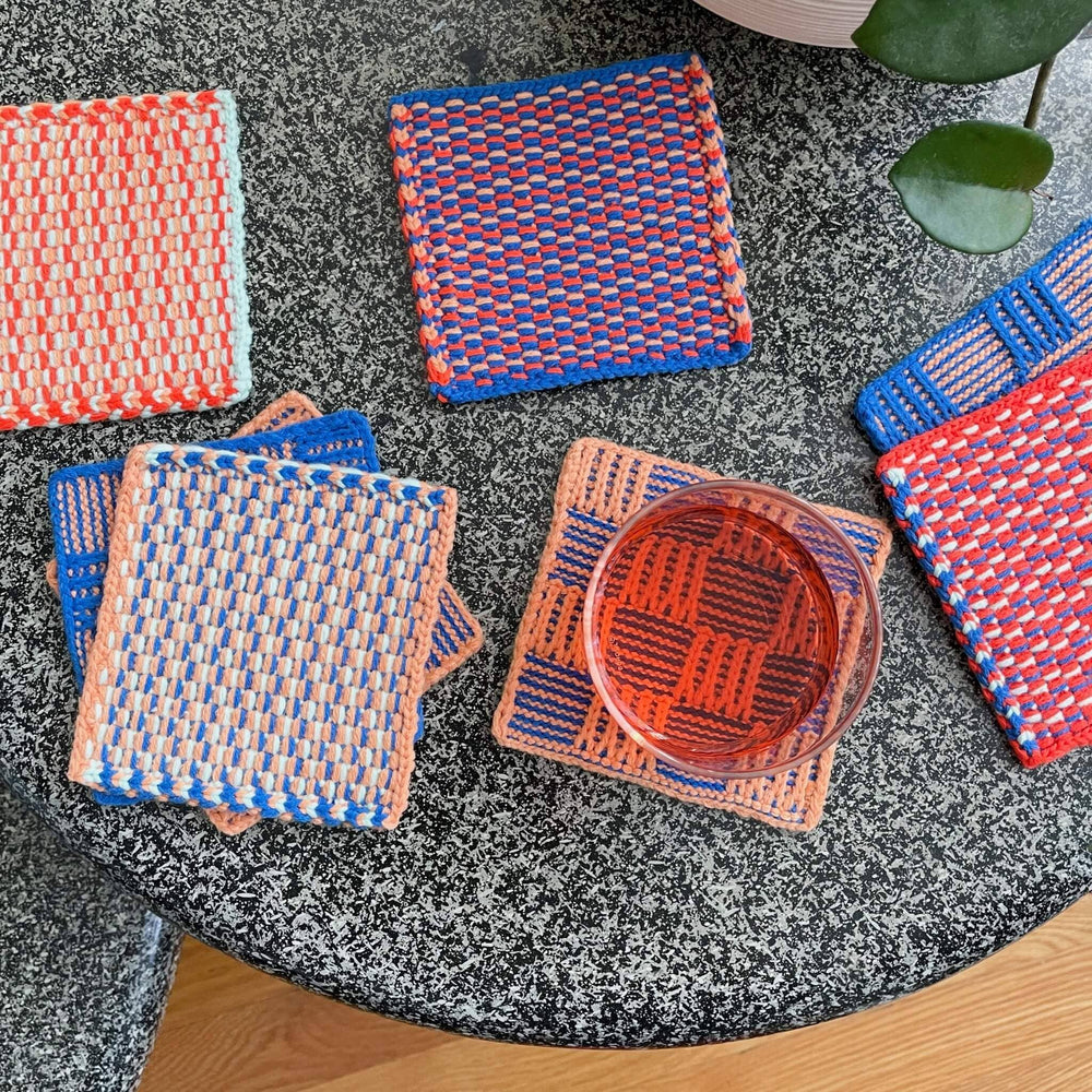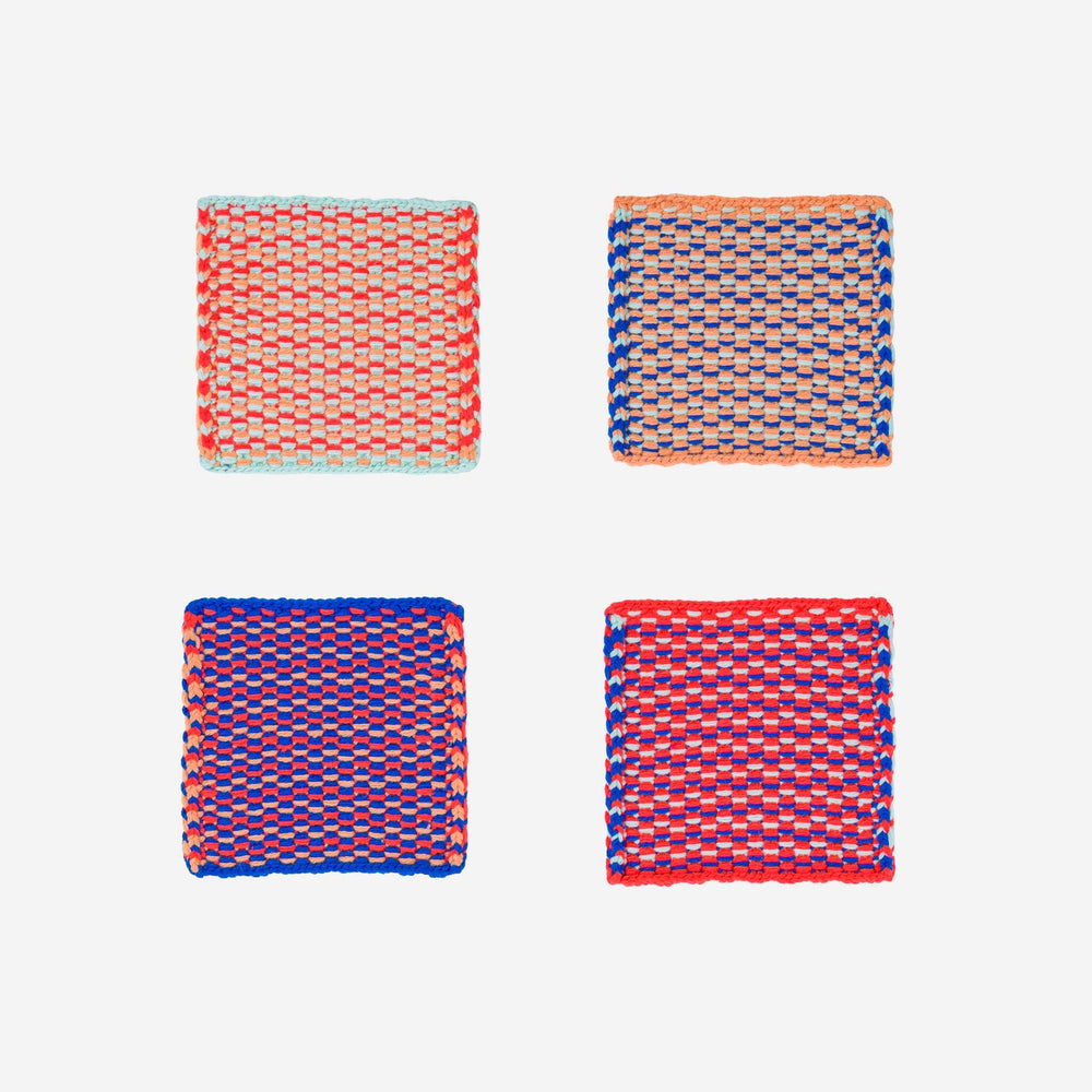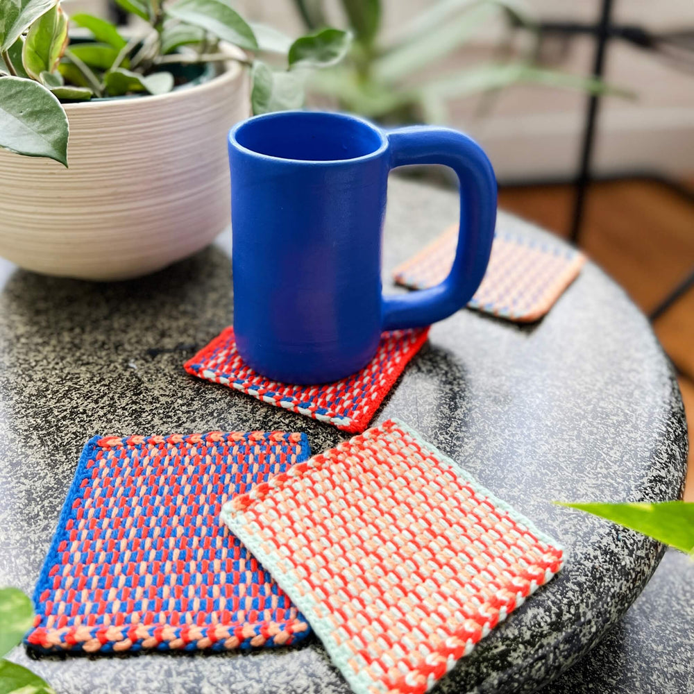 For your next dinner party or cute coffee table upgrade. Set of 4 coasters with colorful woven pattern.